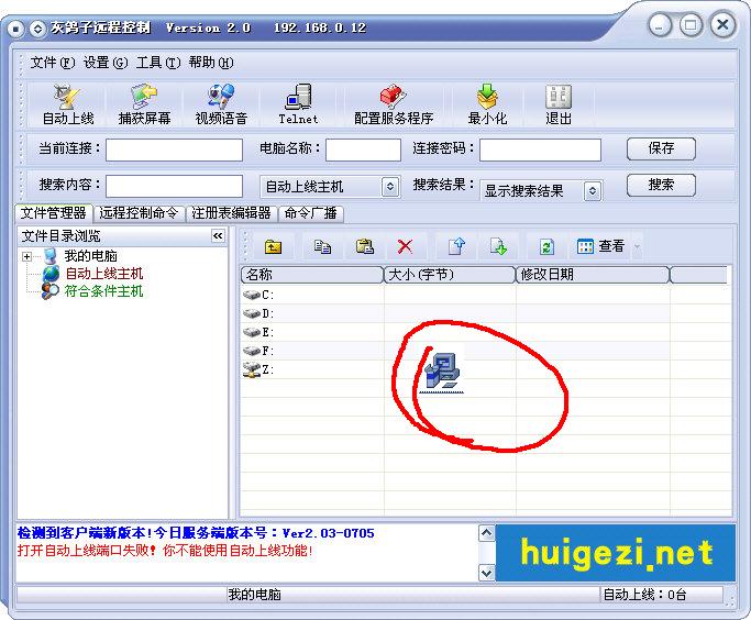 灰鸽子是一个远程控制软件```起初作者可能是为了远程控制,但是后来被用作黑客的工具```你的大图是客户端```是用来连接服务端的``小图是服务端,只要客户端设置正确,服务端配置正确,就可以连接````