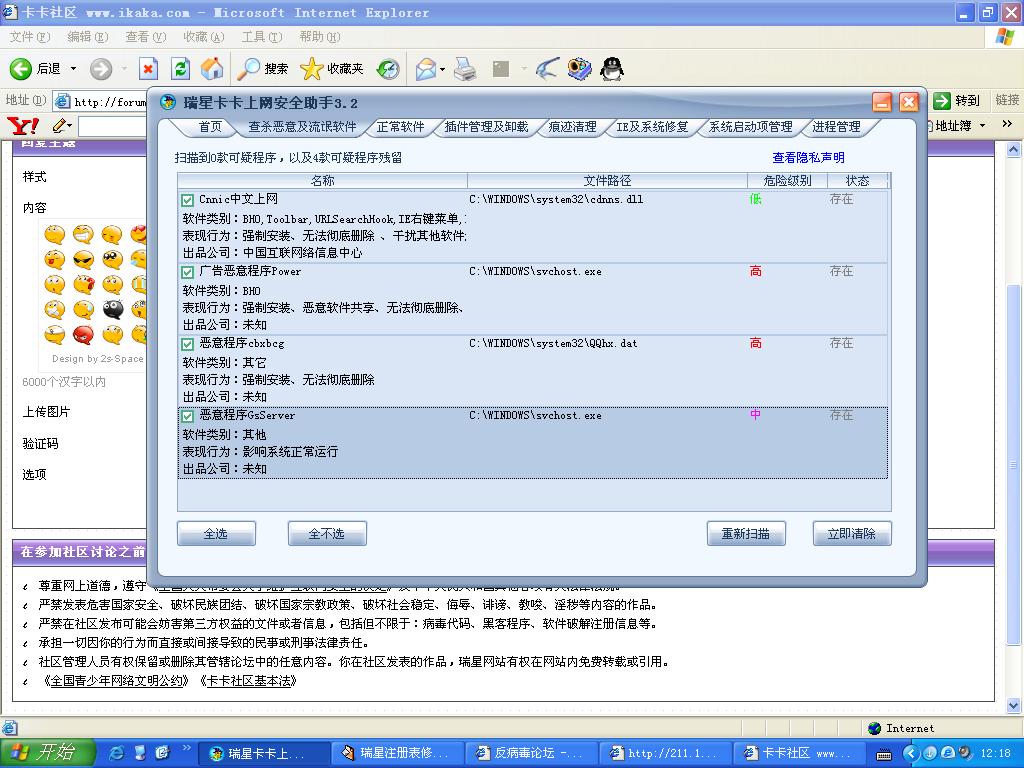 每次还没到接受协议就跳出了.通过KAKA可以知道有流氓软件的存在,但是有几个根本清除不掉.现在还不清楚是不是有病毒.但我怀疑这几个流氓软件就很可疑.把日志附上求助高手啊!