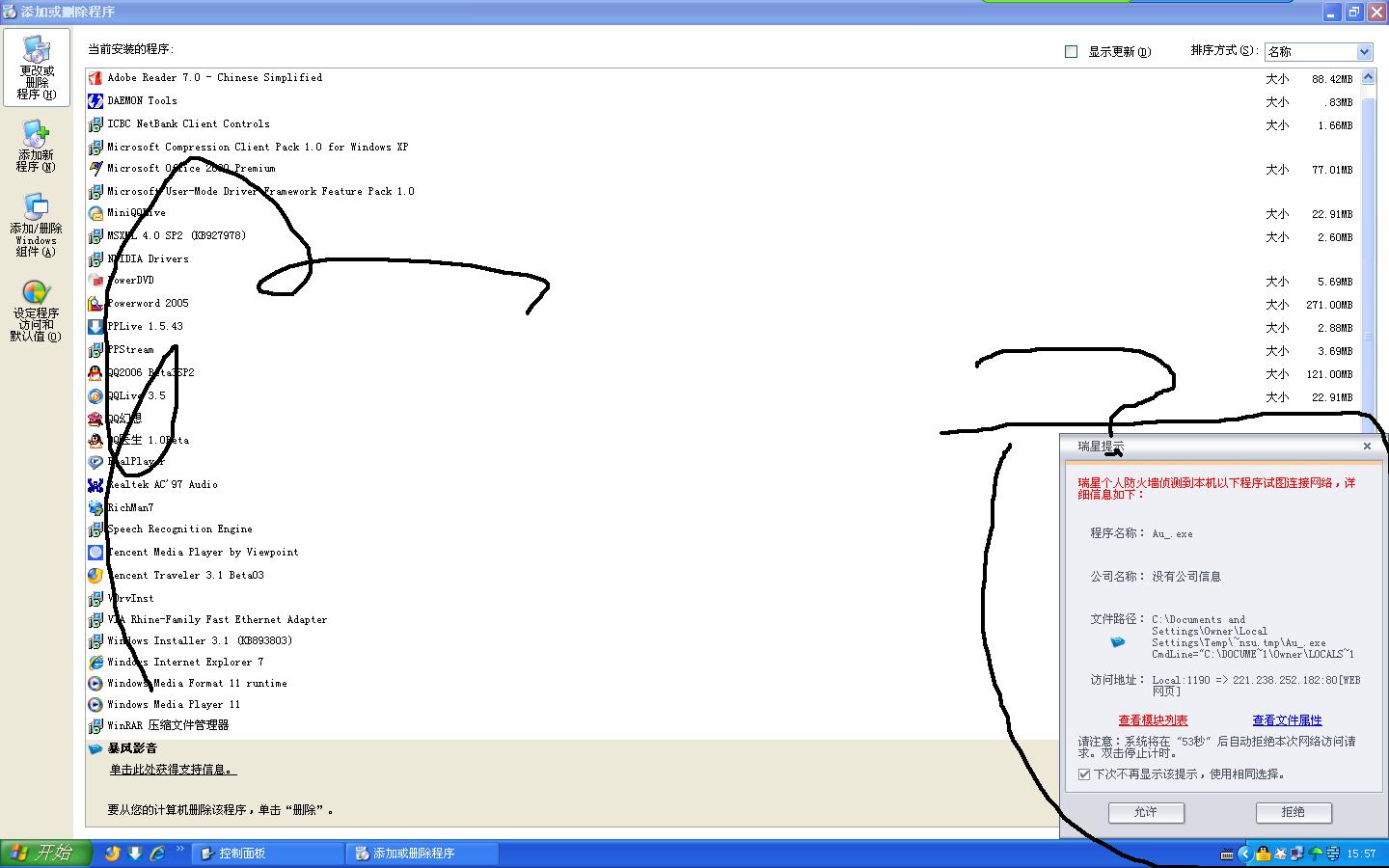 防火墙截下的很多是红的~原来就一个暴风影音,后来随便删了几个再试还是红的~晕啊~