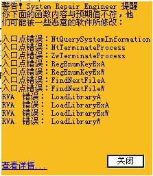 今天用System Repair Engineer检查了一下启动项目,发现弹出如图的提示框,根据