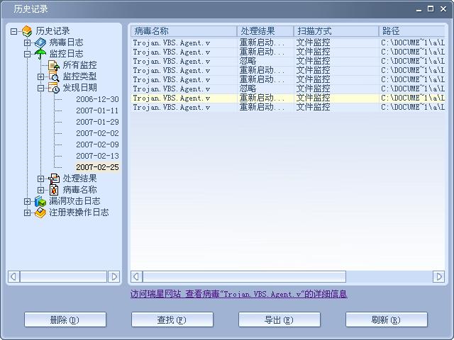 Trojan.VBS.Agent.v 重新启动计算机后删除文件文件监控 C:\DOCUME~1\a\LOCALS~1\Temp\Temporary Internet Files\Content.IE5\ETT27YXO 4[1].htm