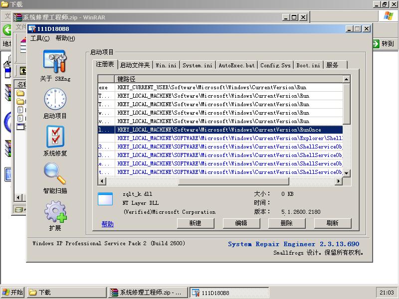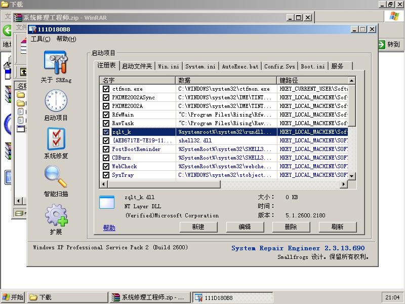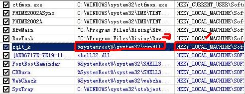 由于ZQLT_K.DLL文件绑定系统程序RUNDLL32.EXE,那个DLL文件的删除我就帮不了你拉!