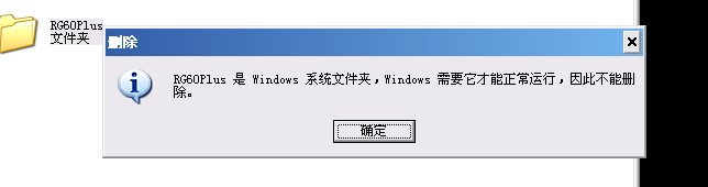 最近,我D盘中出现了一个RG60Plus的文件夹,删除时说是系统文件夹,不能删除,百度介绍的各种方法都不管用。