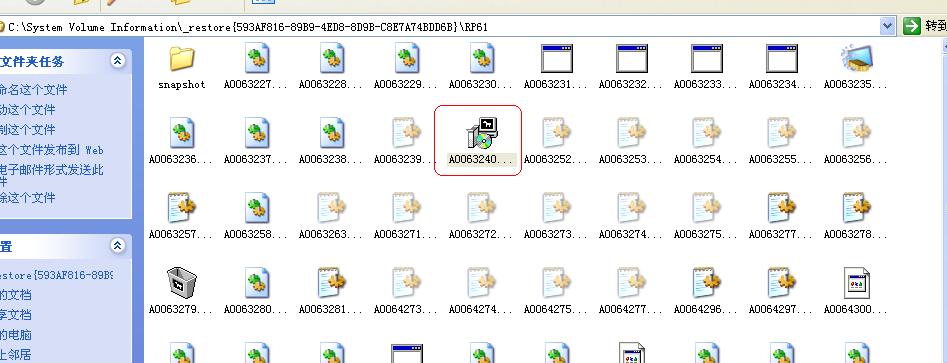 C:\System Volume Information\_restore{593AF816-89B9-4ED8-8D9B-C8E7A74BDD6B}原来这个目录下的是系统还原文件啊。
