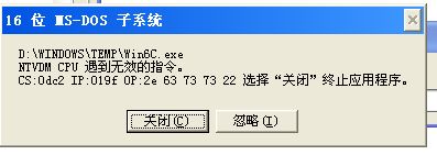 下面是说Temp\***.exe NTVDM CPU遇到无效指令. 的东西