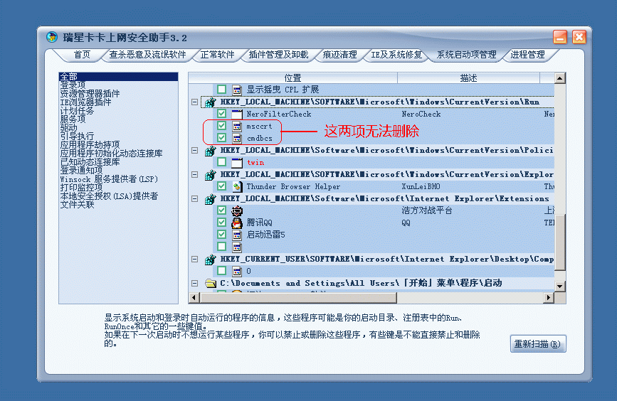 【求助】中毒了,在卡卡的“启动选项”里删除不掉!(图)
