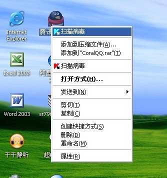 最近不兴中了 据说是SOS 的病毒木马 起初是我朋友的笔记本上中的 他拿了一个U盘 打开以后看到里面有 美女游戏 重要资料 两个文件 现在我电脑上的 杀毒软件 总是不能升级到最新版本 杀毒 用其他的杀毒软件 查杀没有病毒 但是桌面上的图标点击右键 第一项总是出现 扫描病毒 而不是打开 如附图所示