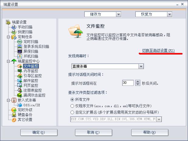 现在我一开机瑞星软件就进入自动监控方式,软件提示我到监控设置里去找问题,可我不知道在监控设置的哪个选项里面,请教各位高手这个问题该怎么解决哪?