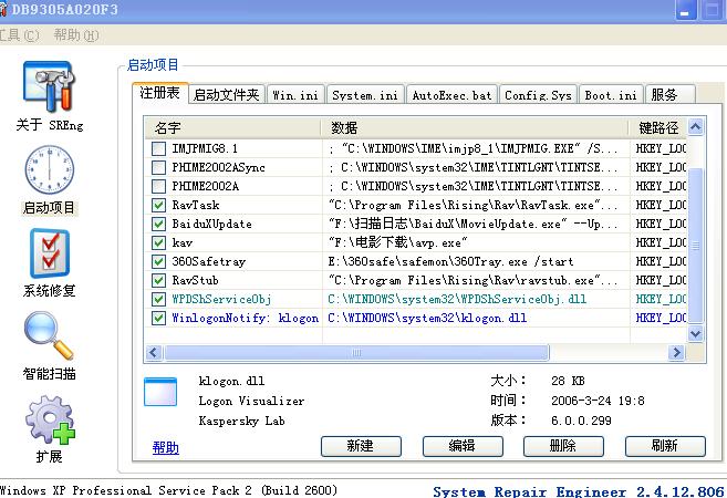 图上有颜色的那两项被修改过,不知道怎么把它修复成原样,删除可以吗,有几项像它那样颜色的启动项,我就把它们给删除了,后来感觉不对颈,就不敢再删了,不知道误删了会怎么样.能不能再找回来?