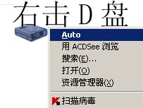 今天发现右击D盘的时候,右击菜单多了个“Auto”而且排在首位,这个病毒怎么杀啊?我用的杀毒软件查不到病毒,这个病毒是叫“落雪”?小弟求杀毒方法,c盘右击就没有“Auto”。小弟求杀毒方法