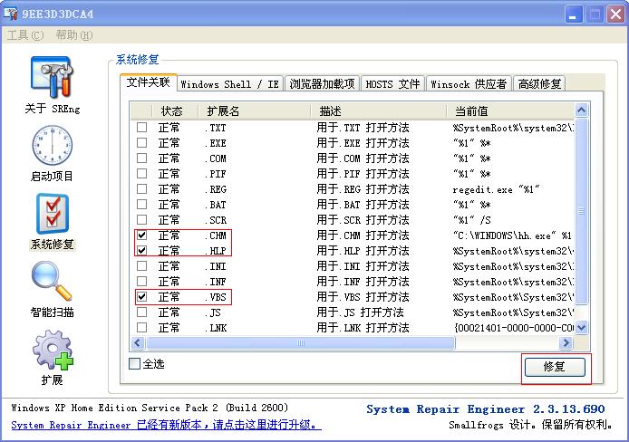 用SRENG做次系统修复,把.CHM Error. ["hh.exe" %1]