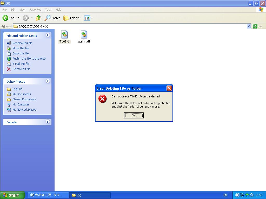 QQ MFC42.DLL和qdshn.dll 为什么删除不掉