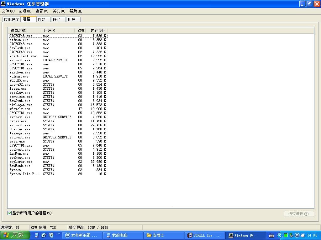 我用瑞星已经杀了几遍了 杀后还有这几个进程 270FCF48.EXE DF9C77B1.EXE 等 附进程表 大家帮我看看 谢谢啊!!!!!!!!!!!!!!!!!!!!!!!!!!!!!!!!!
