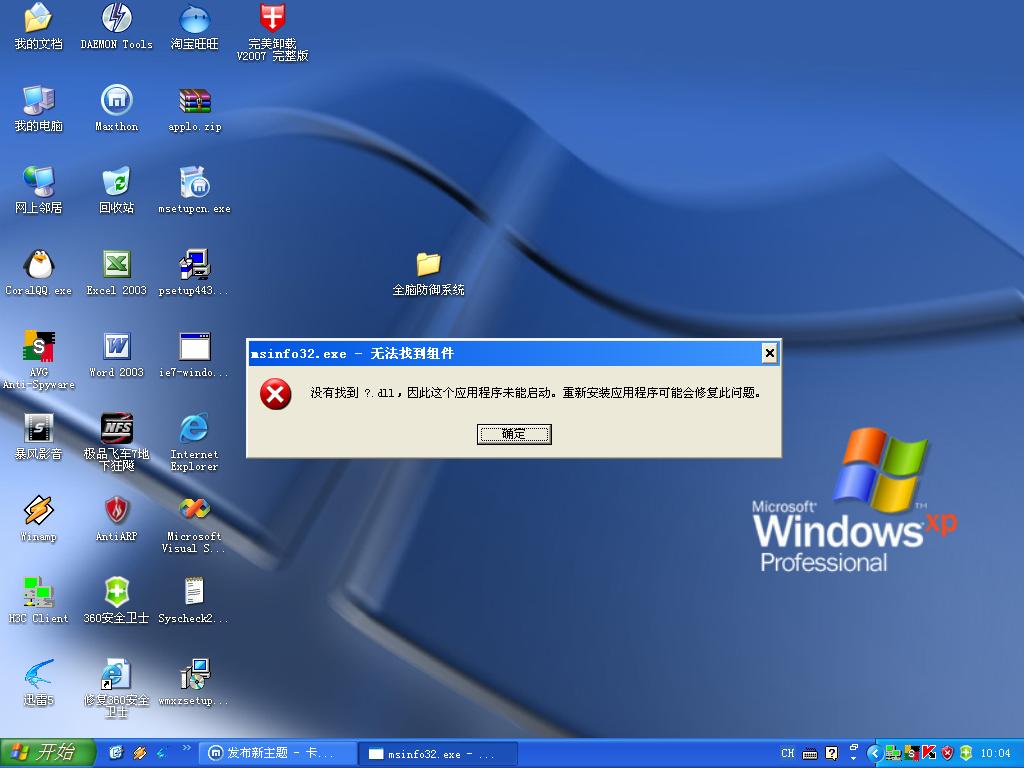 其他正常(启动系统信息查看器是提示"找不到?.dll"(原问就是问号)不知道这是什么原因)