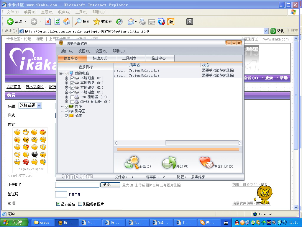 还有就是Trojan如何彻底清除?每次瑞形杀完毕.过几天又有了.谢谢回答.