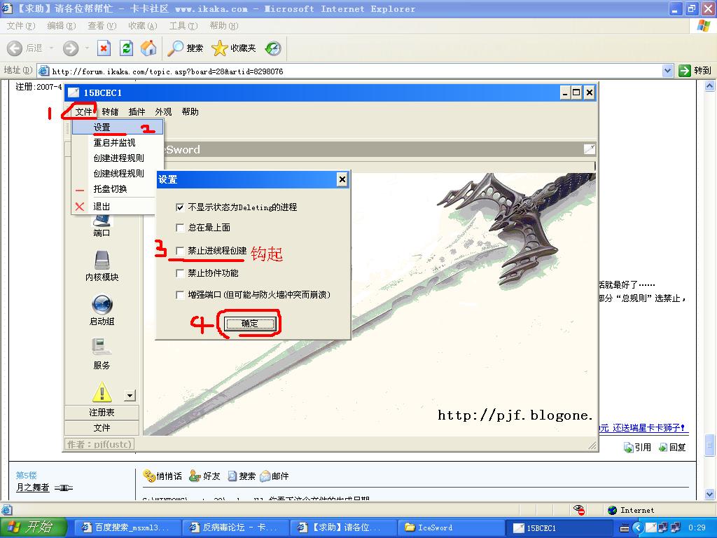 【勇闯猪罗纪的贴子】在安全模式下 用IceSword(冰刃) 禁止线程创建