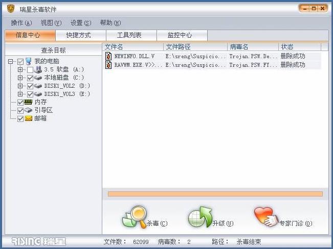 但是堂堂瑞星和一些大公司一样根本不会理会我们这些小用户的苦衷的,我用的是正版瑞星,可出了这个病毒却在瑞星病毒库里给我一句“没有找到该病毒”。我不能不怀疑瑞星的效率以及态度。当然我也去了江民和金山,同样也是没有专杀,同样也是没有解决该病毒的办法。