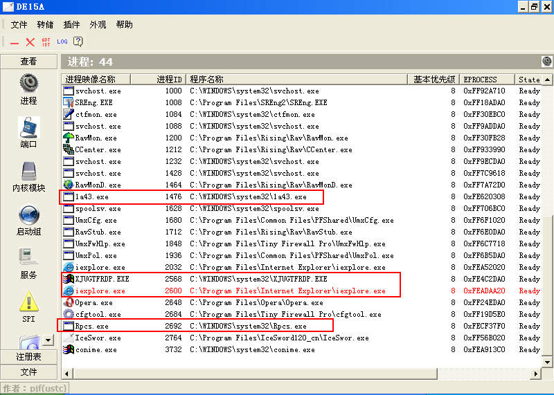 以下是今天运行IsowI.exe后的SRENG日志以及IceSword进程列表中所见的病毒进程。这个下载器释放/下载的文件太多了,这里就不再一一展示。