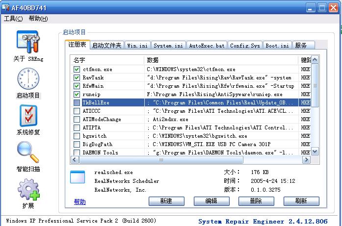 附上图片开机进程、SREng启动项、SREng扫描日志。