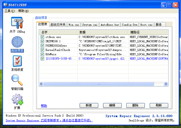 运行SREng-在"启动项目->注册表->删以下启动项目