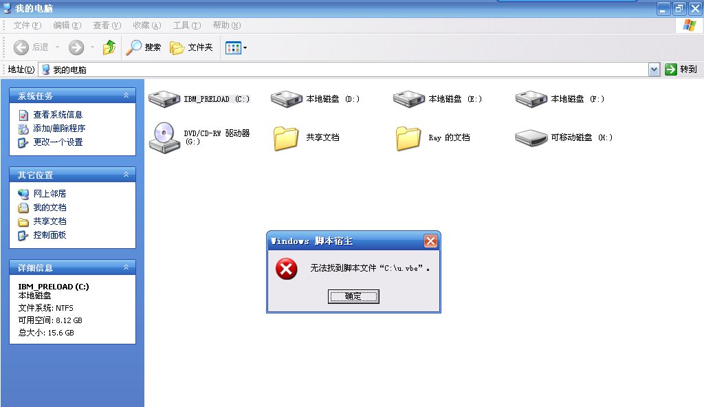看到这个,请不要慌张。电脑病毒的定义为:1、传播性;2、潜伏性;3、破坏性。根据此定义,本脚本这完全符合1,有点符合2,不符合3(若说破坏性也不是没有,但只针对U盘病毒,而且会在删除文件前备份,备份地址:C:\WINDOWS\bakfiles\),因此,病毒二字加了引号,即不是真正的病毒。本脚本的目的是通过U盘传播,并沿途清理U盘中的病毒,如果可能,会把收集到的病毒文件发给作者;不会给您造成太多不便(与其被U盘病毒感染,不如被本脚本感染啦)。如果您觉得这样给您造成了不便,想卸载本脚本,请在C:\下新建一个名为8bye的文本文件(不需要写入内容,即:新建C:\8bye.txt),大约在20秒内完成卸载,并帮助您进行U盘病毒免疫。欲了解更多,请打开 U盘病毒分析 的自述文件(地址:C:\WINDOWS\readme.txt)。谢谢!