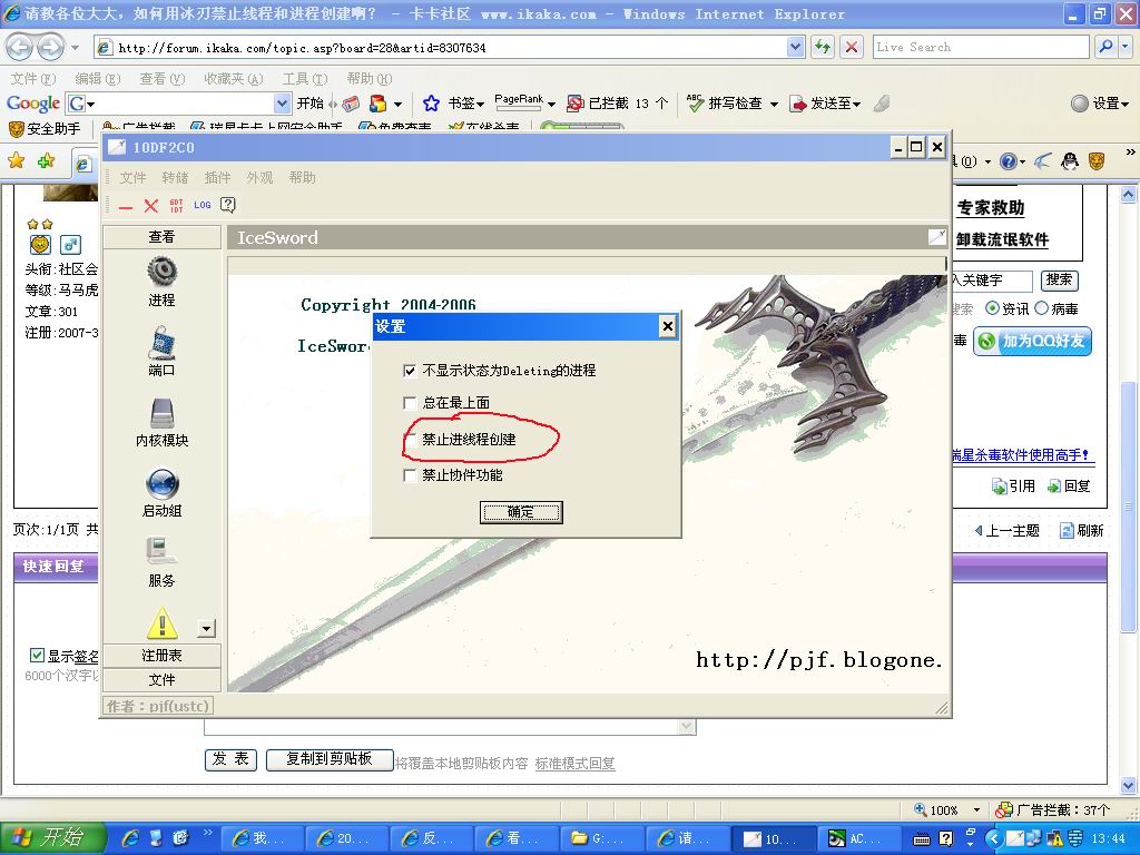 请教各位大大,如何用冰刃禁止线程和进程创建啊?