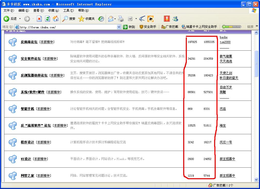 相比技术区其他版块,反病毒区应该是人气最旺的了: