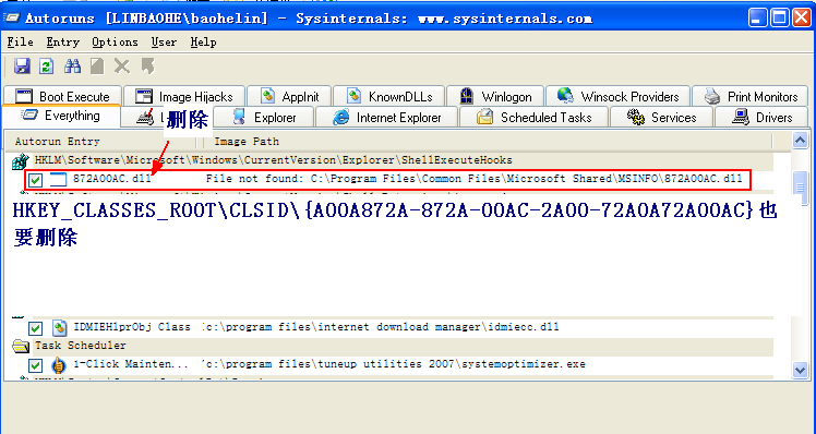用IceSword强制删除下列文件以及各个分区根目录下的autorun.inf和“8位数.exe文件”