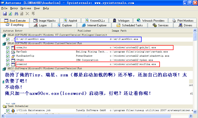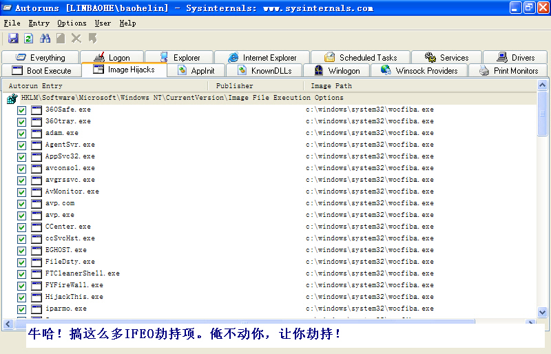 近期,这种带IFEO劫持的东东很时髦。新变种不断出现,且功力还有某些长进(详见:http://forum.ikaka.com/topic.asp?board=28&artid=8316949)
