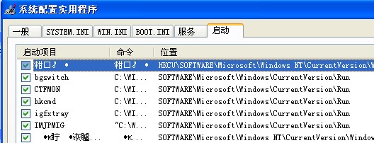 【求助】msconfig中的乱码去不掉,瑞星查不出来~