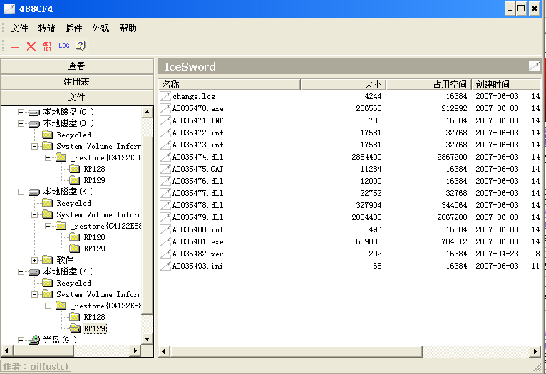 中了8位随机数病毒,好象删除了, 我格式化了D,E,F三个盘,但是用冰刃查了一下, 这三个盘下的隐藏文件夹下都有这么些8位数的文件, 这是些什么呢?