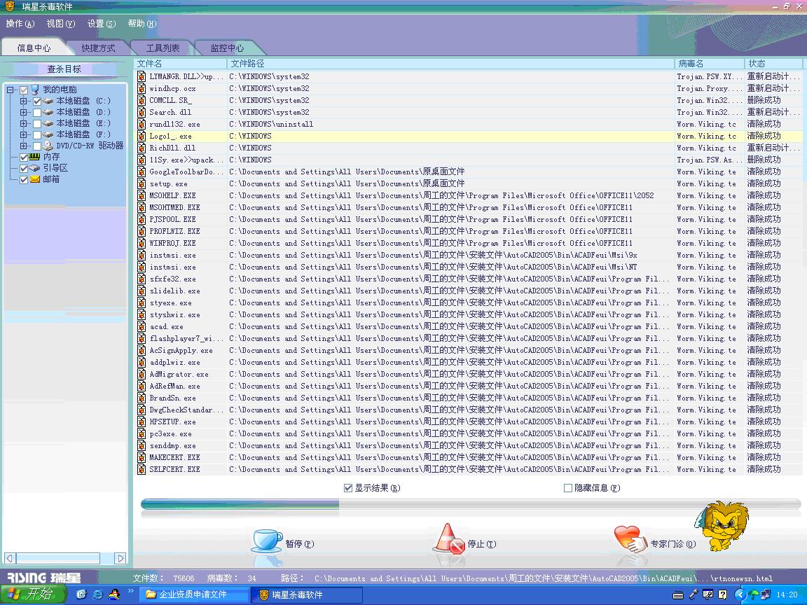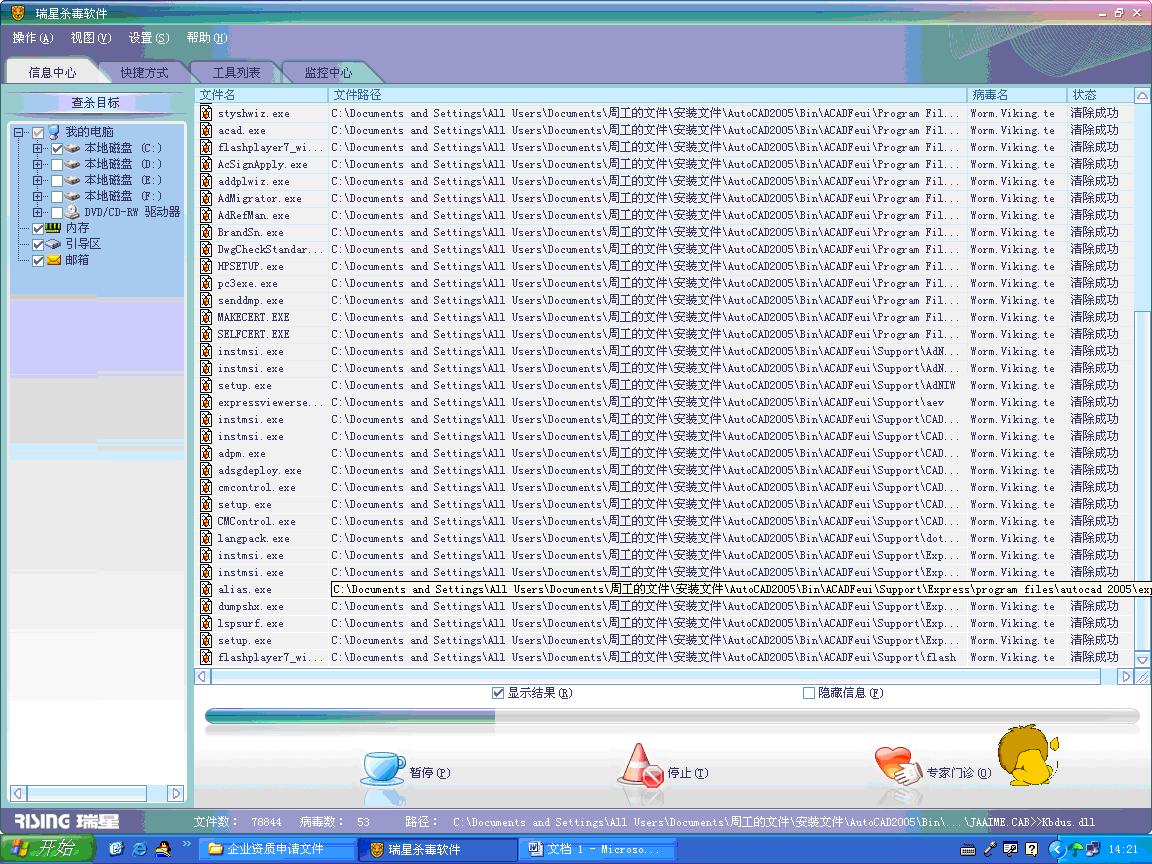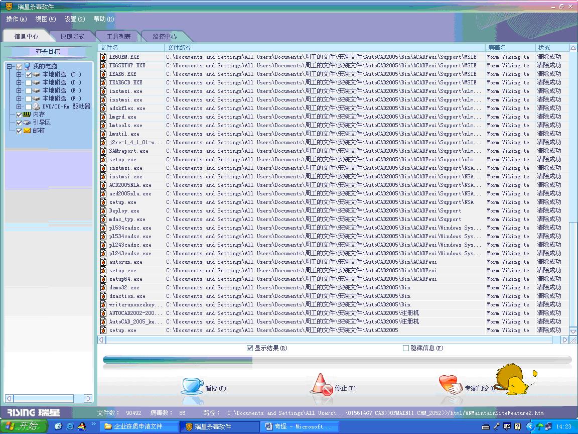 【天月来了的贴子】先去瑞星的病毒隔离区还原所有文件。