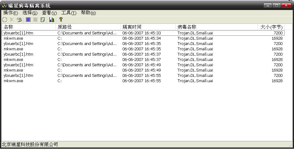 电脑中毒了!就是这个trojan.dl.small.uai,刚才在google上也搜不到是什么病毒,而且用瑞星查杀显示病毒数是0,但在隔离系统可以看到,而且删掉再开机查还有.这是怎么回事?像这种情况有危险吗?应该怎么解决,请高手指教!谢谢![img][/img]