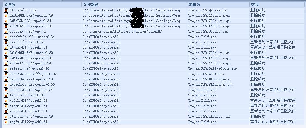 这些病毒没完没了,杀了重启后再杀还是那么多。杀不死的??瑞星的高手们看看怎么解决?(用光盘DOS下也杀过了)