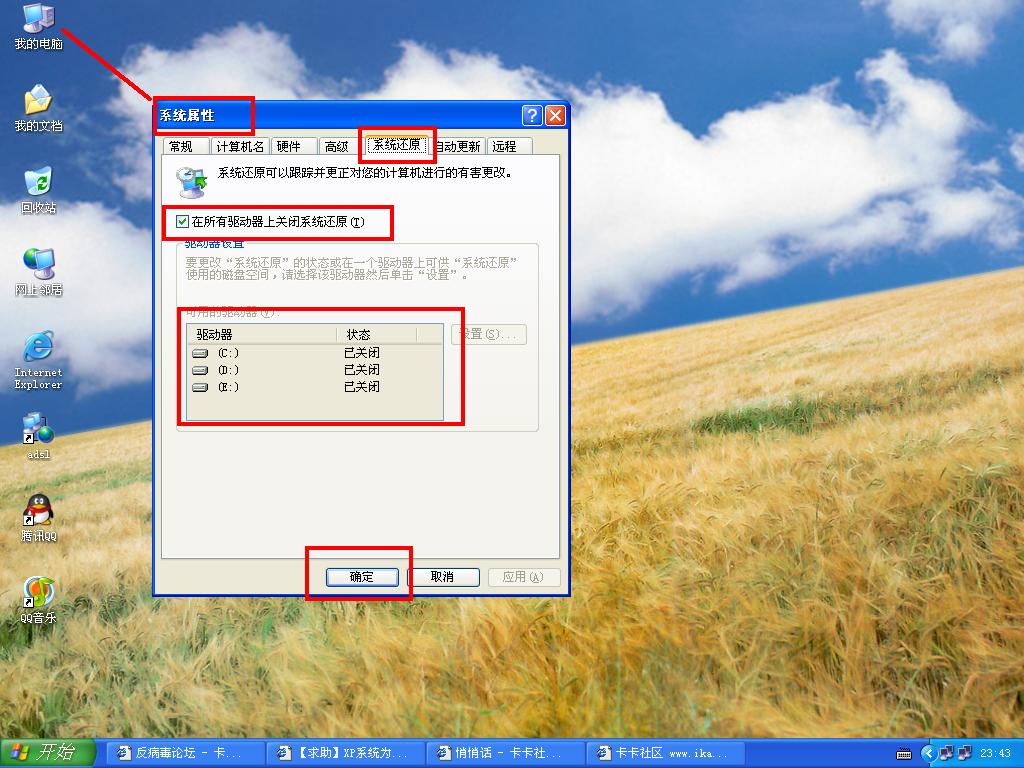 晕死了,你也不看贴,是:“关闭系统还原。”