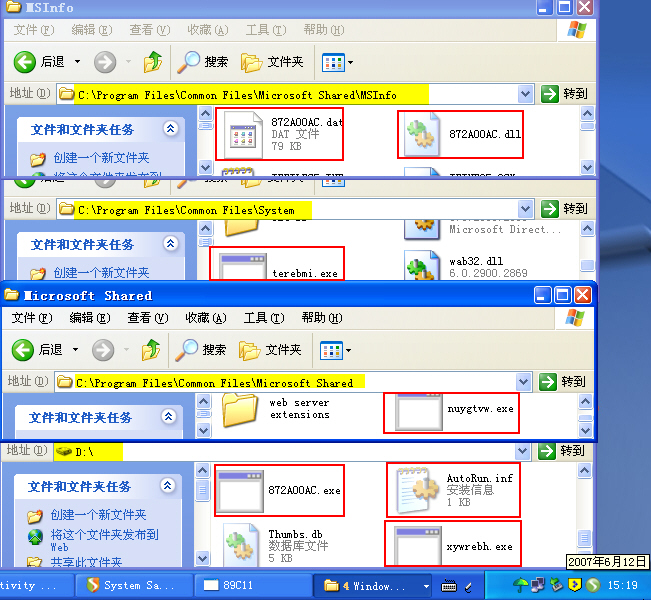 注意俺的任务栏啊————该有的(原先被“猪”们劫持的软件),一个不少。那个89C11是IceSword。
