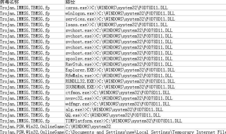 昨晚中了Trojan.IMMSG.TBMSG.fp病毒还有Trojan.PSW.Win32.OnlineGames.i病毒,