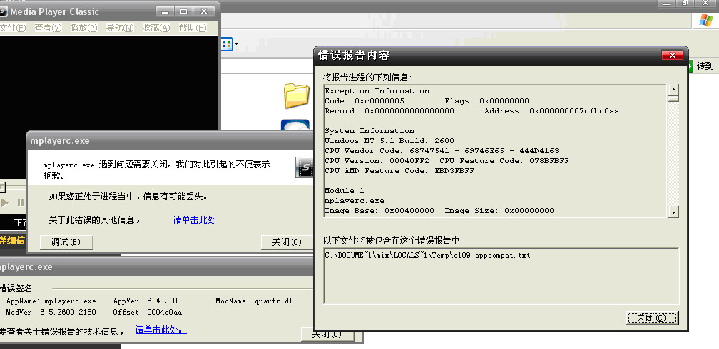 暴风  REAL  WINDOWS MAIDO PLAYER 均重装过  都不行~~~