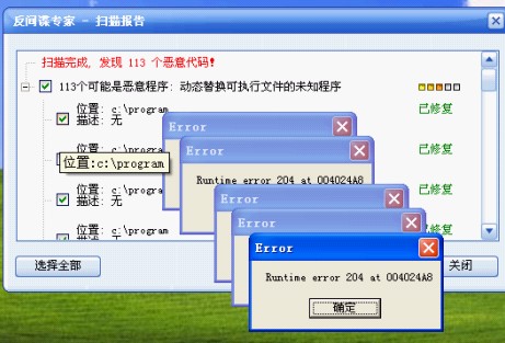 电脑中毒了,最初症状是瑞星不能升级,一升级升级程序就自动退出,不能杀毒,无法运转。重启后瑞星自动退出,无法启动,文件夹选项不能查看所有文件(选上也自动改回)。只好选用其他杀毒软件,查出有动态恶意代码,但是清除也清除不掉。甚至上卡卡社区网页都会自动关闭,也不能用雅虎网页杀毒(会自动关闭)。