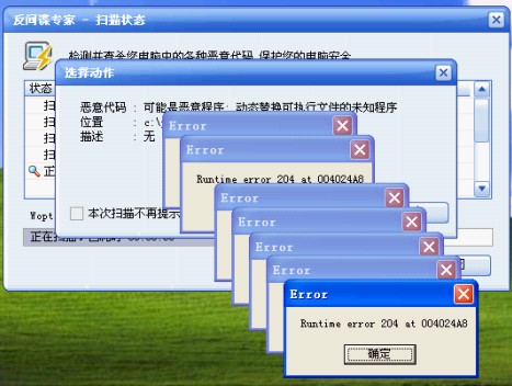 开机时用07版光盘杀根本不起作用。第一次重启的时候在进入系统值钱瑞星曾经启动过,但是进入系统后自动退出,第二次重启,瑞星完全消失了,在第二次重启前试图用光盘直接杀毒,但是运行不了。进入不了安全模式,其他症状完全同其他中了av终结者的一样。
