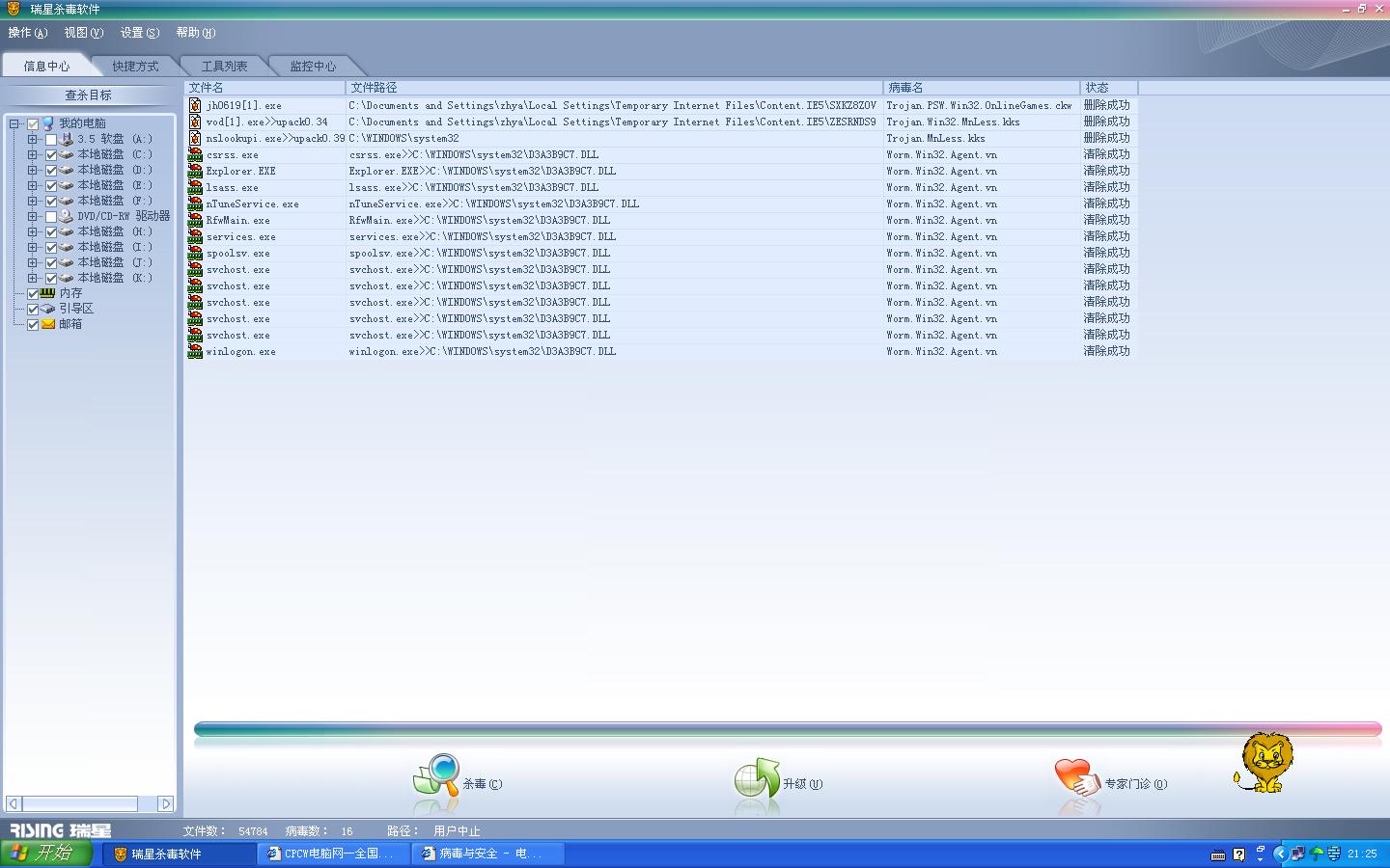 现在我剩下Worm.Win32.Agent.vn老杀不掉