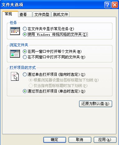 再有在文件夹选项中“常规”一栏无法修改,改完了应用确定,再看还是原来的。