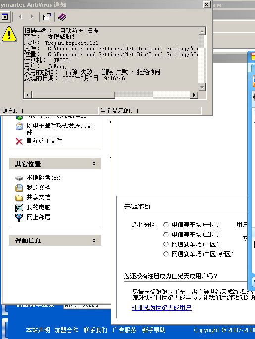 玩跑跑卡叮车在登陆的时候弹出网页,诺顿报警。