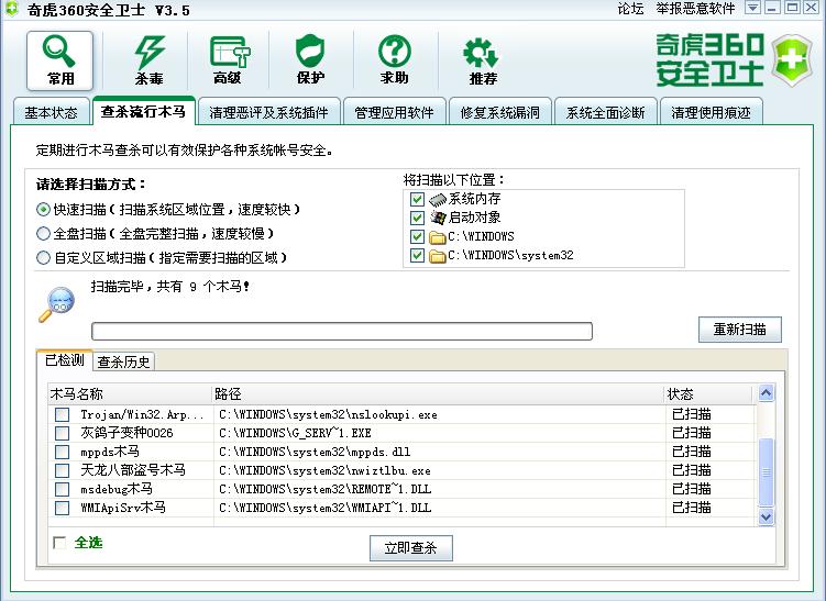 360安全卫士,彻底查杀各种流氓软件,全面保护系统安全,并赠送正版卡巴斯基V6.0