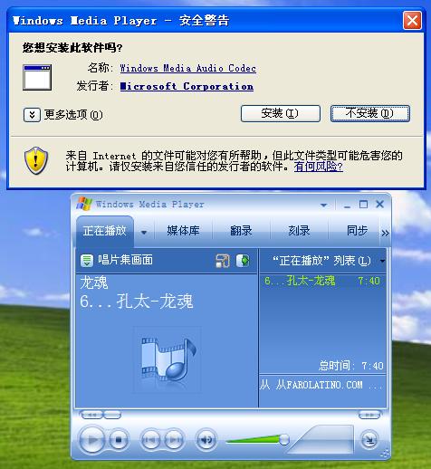 我也不知道是什么,好象是编解码器,不敢确定.该歌曲是世界上音域最宽的歌曲,被载入了吉尼斯世界纪录的,跨越四个八度 都说该曲让人震撼,所以我好想听,又怕中木马.因为这个网蛙网站我登陆了,每次点下载它都会有个新页面,要求注册,可是我已经登陆了它都还这样,我一按注册,页面就提示"服务器升级中",可是都一个多月了还没升完,有点不对头  谢谢!  http://newav.wanwa.com/new_wanwa/newav/search/singerDiscList.asp?singer=%BF%D7%CC%AB  这个网页是我登陆后的页面,如果不能打开,可以打开http://newav.wanwa.com/,注册后搜索歌手 孔太 就只有两首歌 视听它需要安装个东西 我就想确定一下是否有病毒  谢谢!