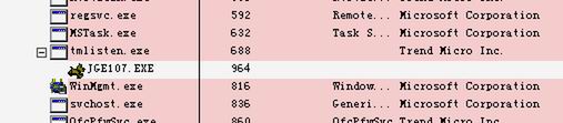 我在单位的机子(WIN2000专业版)发现了一个进程(进程文件在WINNT的TEMP目录,父进程是趋势目录里的TMLISTEN.EXE),看起来好象是监听之类的东西。我的电脑用的是趋势的网络版防毒墙,每次启动电脑就出现这个进程,请问是什么呢?