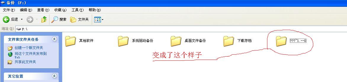 我的一个文件夹,原文件夹名为“系统安装文件”。后来不知怎么突然变成下面这个样子,现在根本无法访问。里面有好多文件。。。。急啊!!!哪位大侠能帮忙解决??谢谢!!!!!
