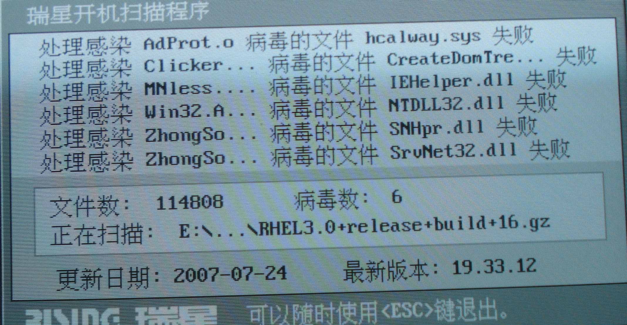 用开机扫描到的病毒,就是清除失败,不知是什么病毒。