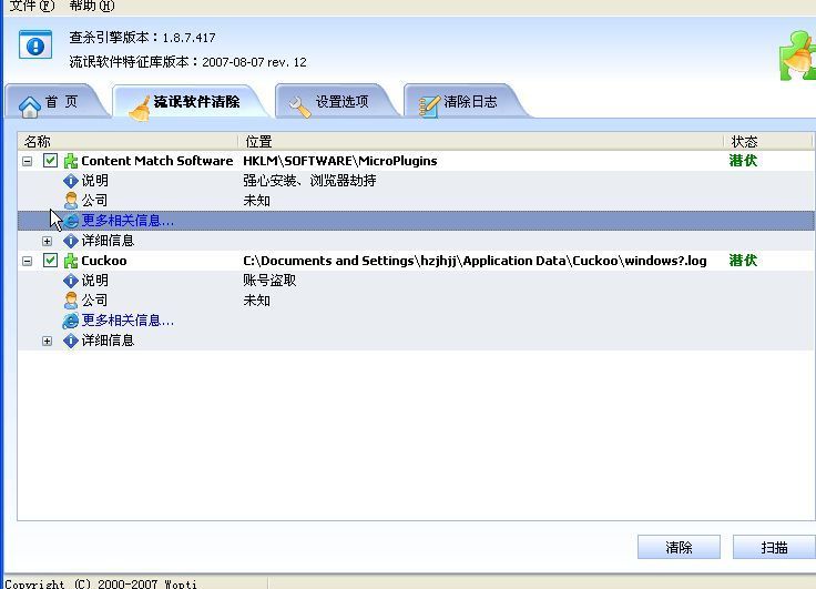 【求助】优化大师中的工具《流氓软件清除大师》查出的两个流氓软件