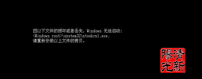 由于病毒感染所有exe文件 所以重启以后可能会造成ntoskrnl.exe,ntkrnlpa.exe等核心启动文件被修改从而造成系统启动失败